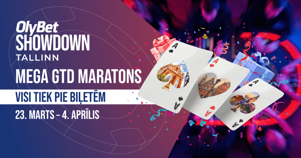 OlyBet Showdown Tallinn Mega GTD maratons Visi tiek pie biļetēm! UZZINI VAIRĀK OlyBet Showdown Riga Voodoo Spring 2026 30+ turnīri, centrā esot 1100 € Galvenajam turnīram, kā arī nemitīgām cash spēlēm. 2026. gada 14. – 22. marts Olympic Voodoo Casino, Rīga, Latvija LASĪT VAIRĀK OlyBet Showdown Tallinn 2026 Vairāk nekā 40 turnīri, ieskaitot 1100 € […]